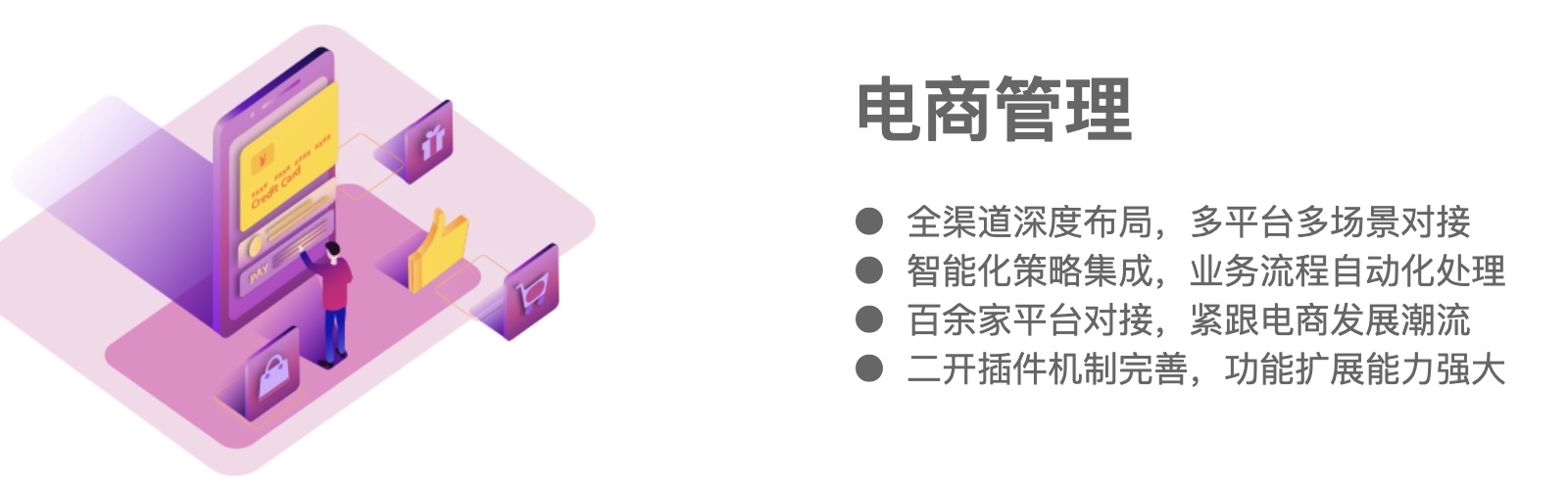 是基于中台思想,平台架构,全渠道理念,前后端分离的技术,面向中大型企业全新打造的一款全渠道中台产品,产品支持线上线下一体化,包含电商、ERP、门店及企业移动应用管理,帮助企业实现新零售转型